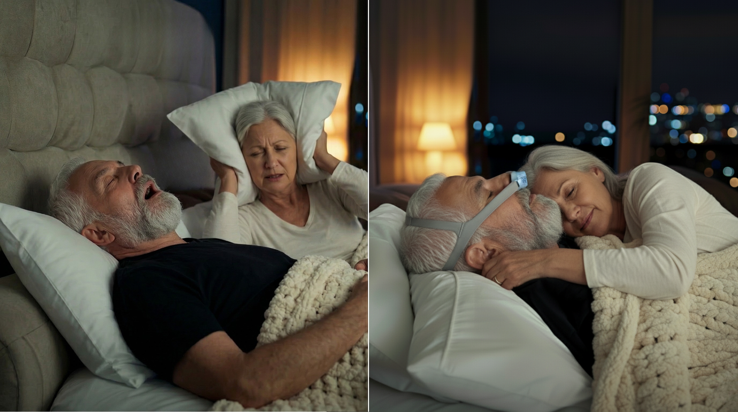 Your snoring doesn't just affect you—it disrupts your partner's sleep too. The Snorelux CPAP stops snoring at its source, so both of you can enjoy deep, uninterrupted rest. Silent operation means no machine noise, just quiet breathing and peaceful sleep. Restore intimacy and wake up refreshed together every morning.