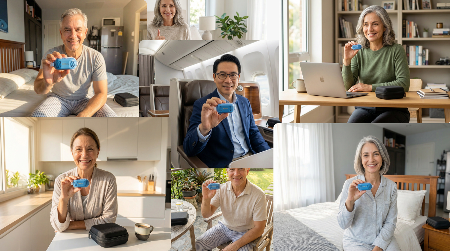 Der Snorelux PRO ist ultraleicht und komplett autark – ohne Schläuche, ohne sperrige Masken und ohne komplizierte Einrichtung. Der wiederaufladbare Akku hält bis zu 12 Stunden und ist somit ideal für zu Hause oder unterwegs.