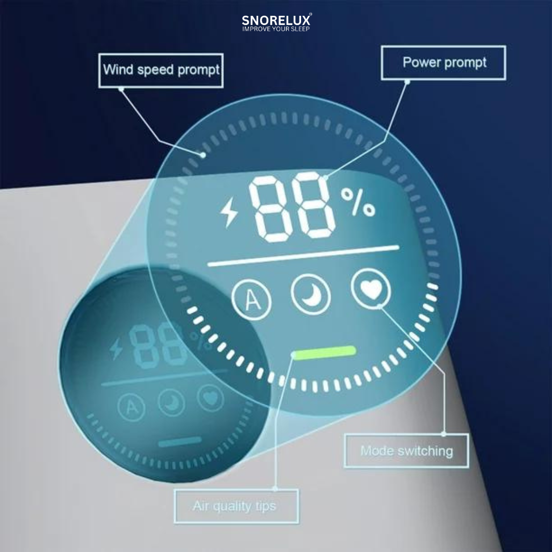 At the core of our air purifier is the powerful 2.5 PM filter, capable of capturing particles as small as 2.5 micrometers. From dust mites and pollen to smoke and pollution, the Snorelux 2.0 ensures that the air in your bedroom remains pristine, helping to alleviate allergies and respiratory discomfort.
