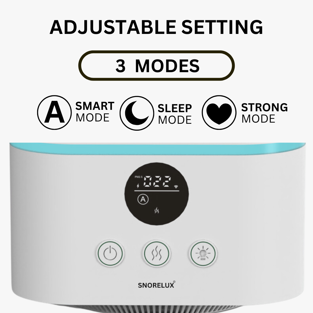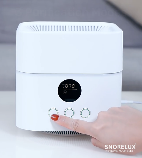 Introducing the Snorelux 2.0 Air Purifier & Humidifier, your Ultimate Solution for a Healthier, More Comfortable Sleep Environment with clean and fresh air.
